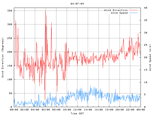- Max Wind Speed: 8.4 ms-1 Time: 14:30:05 GMT