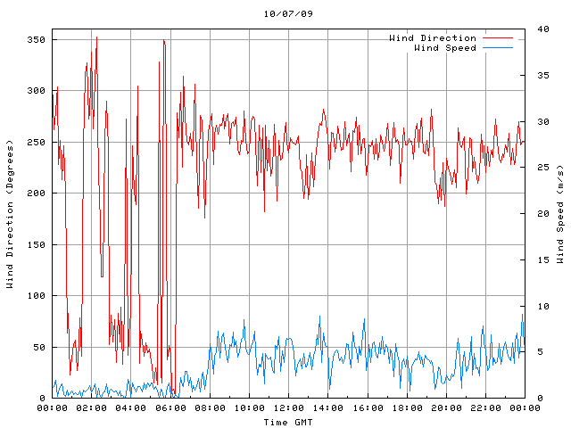 - Max Wind Speed: 9.1 ms-1 Time: 23:50:05 GMT