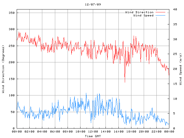 - Max Wind Speed: 11.8 ms-1 Time: 10:55:05 GMT