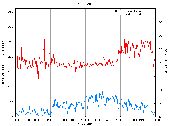 - Max Wind Speed: 9.5 ms-1 Time: 13:50:05 GMT