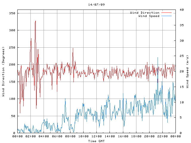 - Max Wind Speed: 24.5 ms-1 Time: 21:15:05 GMT