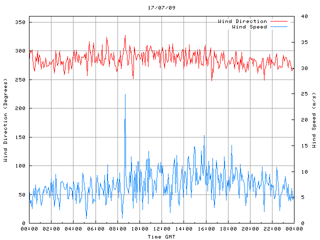 - Max Wind Speed: 24.9 ms-1 Time: 8:40:05 GMT