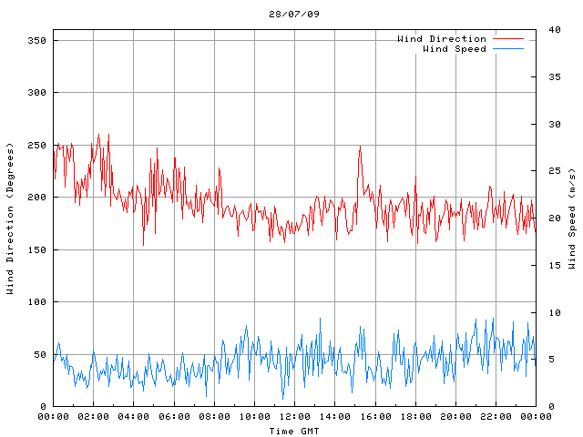 - Max Wind Speed: 9.4 ms-1 Time: 21:50:05 GMT