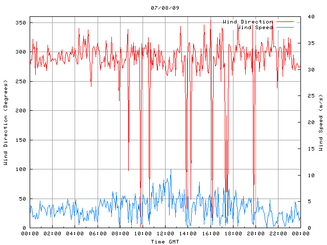- Max Wind Speed: 11.1 ms-1 Time: 12:30:05 GMT