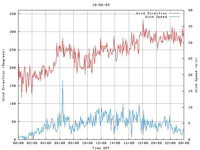 - Max Wind Speed: 18.1 ms-1 Time: 6:25:05 GMT