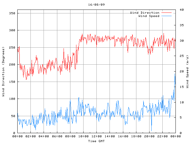 - Max Wind Speed: 19.2 ms-1 Time: 23:50:05 GMT
