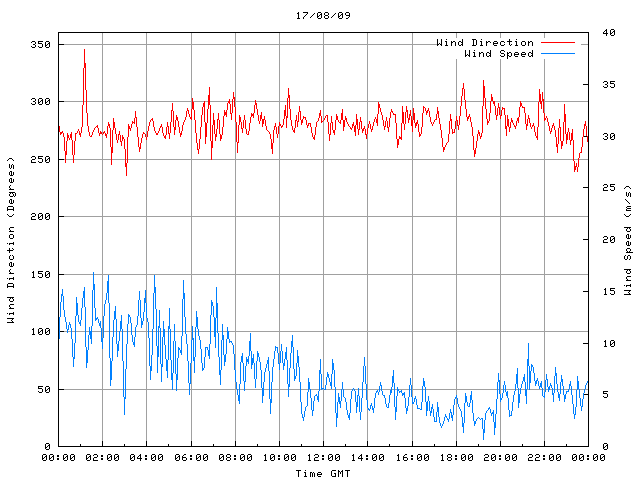 - Max Wind Speed: 16.8 ms-1 Time: 1:35:05 GMT