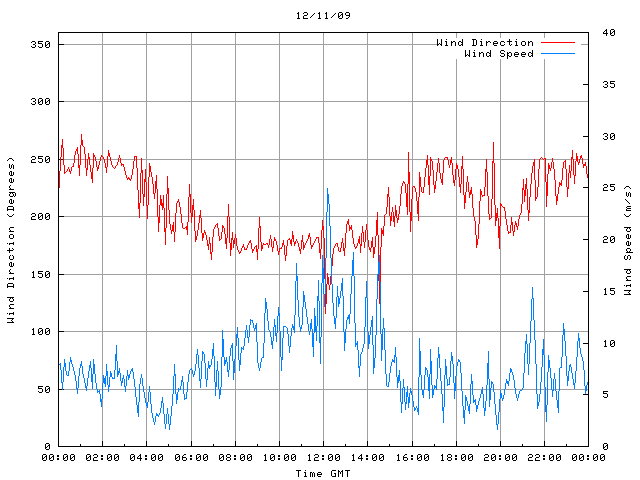 - Max Wind Speed: 25.0 ms-1 Time: 12:11:16 GMT