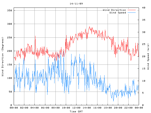 - Max Wind Speed: 21.9 ms-1 Time: 9:36:16 GMT