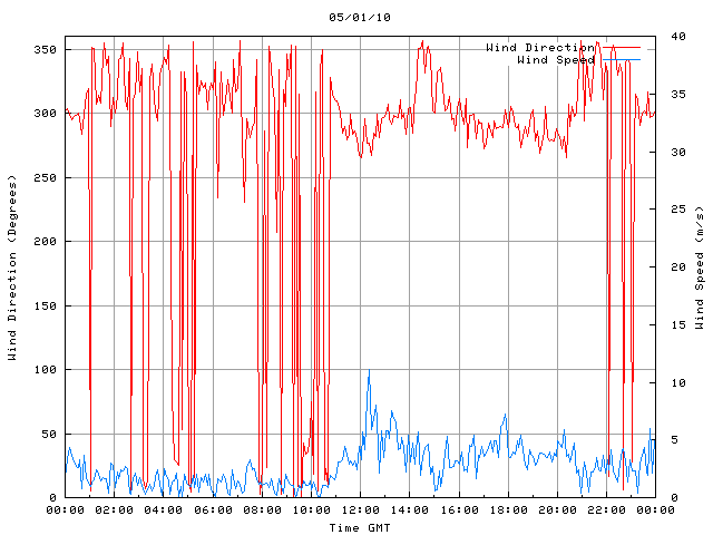 - Max Wind Speed: 11.1 ms-1 Time: 12:21:16 GMT