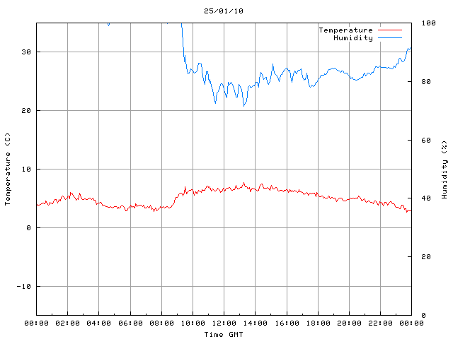 - Max Temp: 7.7 °C Time: 13:16:16 GMT