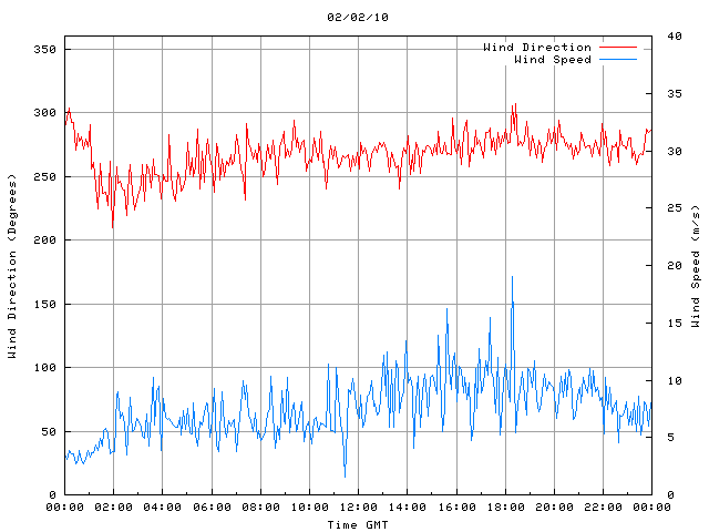 - Max Wind Speed: 19.1 ms-1 Time: 18:16:16 GMT