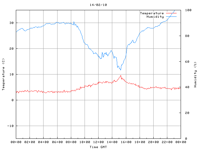 - Max Temp: 9.7 °C Time: 15:16:16 GMT