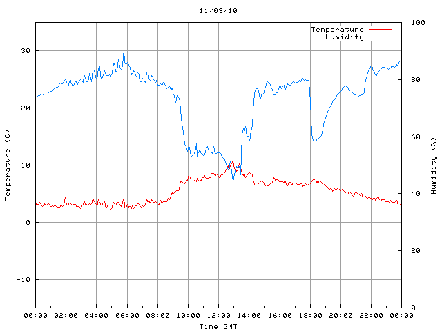 - Max Temp: 10.7 °C Time: 12:56:16 GMT