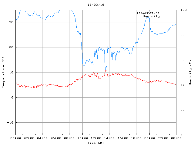 - Max Temp: 10.9 °C Time: 13:26:16 GMT