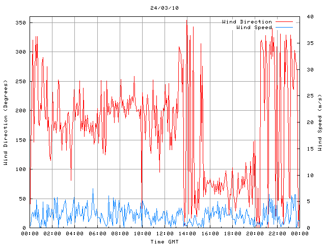 - Max Wind Speed: 7.4 ms-1 Time: 5:36:16 GMT