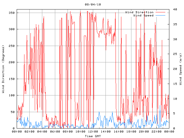 - Max Wind Speed: 7.7 ms-1 Time: 22:31:16 GMT