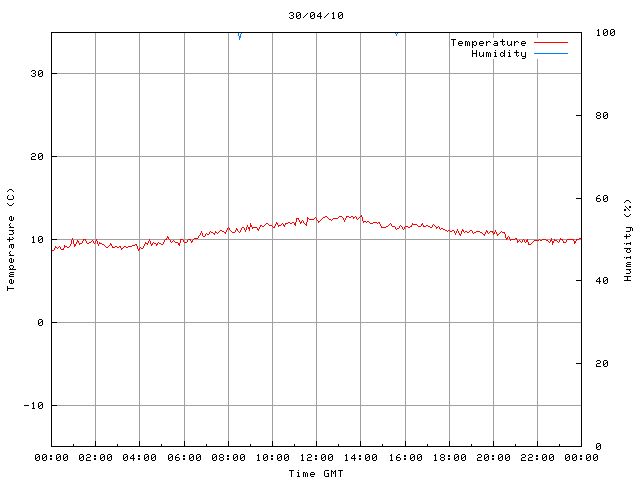 - Max Temp: 12.9 °C Time: 14:01:16 GMT