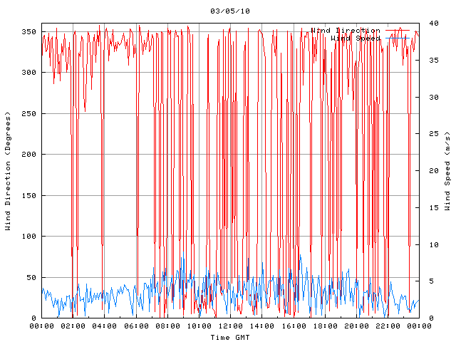 - Max Wind Speed: 9.0 ms-1 Time: 9:01:16 GMT