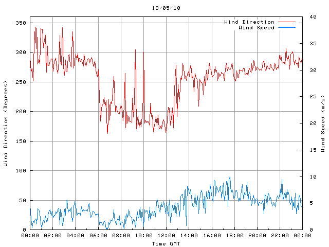 - Max Wind Speed: 9.9 ms-1 Time: 17:36:16 GMT