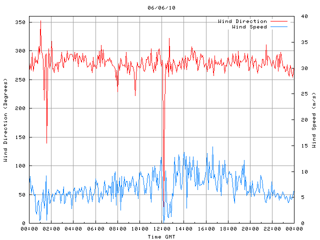 - Max Wind Speed: 14.8 ms-1 Time: 16:36:16 GMT