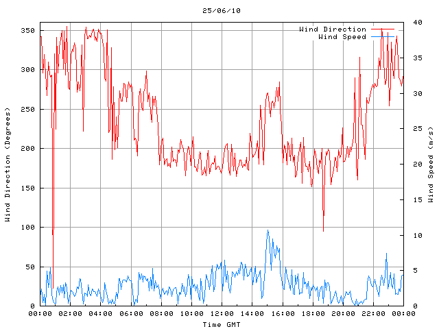 - Max Wind Speed: 10.8 ms-1 Time: 15:01:16 GMT