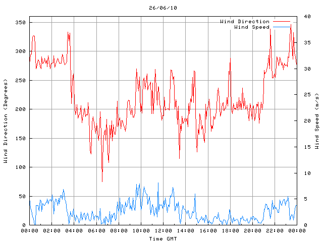 - Max Wind Speed: 8.1 ms-1 Time: 11:31:16 GMT