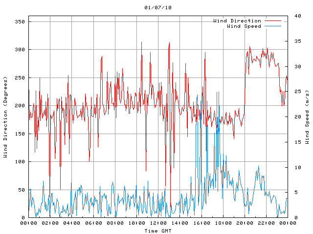 - Max Wind Speed: 24.9 ms-1 Time: 17:36:16 GMT