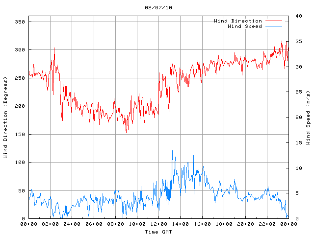 - Max Wind Speed: 13.5 ms-1 Time: 13:16:16 GMT