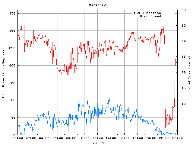 - Max Wind Speed: 11.7 ms-1 Time: 13:46:16 GMT