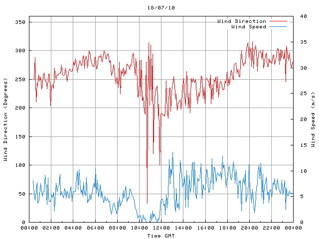 - Max Wind Speed: 13.6 ms-1 Time: 13:02:10 GMT
