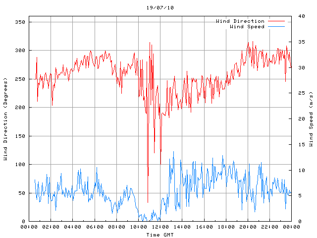 - Max Wind Speed: 13.6 ms-1 Time: 13:12:10 GMT