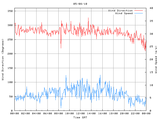 - Max Wind Speed: 13.9 ms-1 Time: 15:37:10 GMT