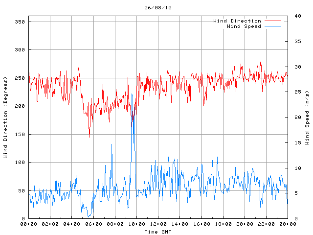 - Max Wind Speed: 24.7 ms-1 Time: 9:32:10 GMT