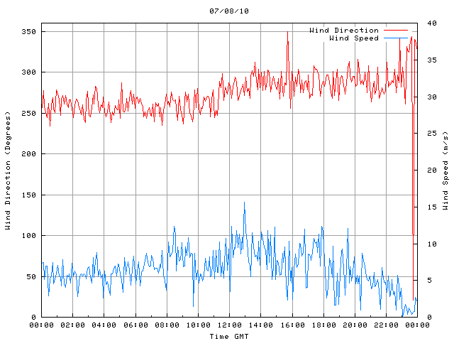 - Max Wind Speed: 15.7 ms-1 Time: 12:57:10 GMT