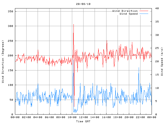 - Max Wind Speed: 20.6 ms-1 Time: 10:12:10 GMT