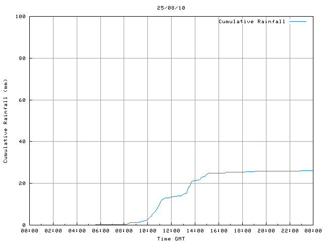 - Max Rainfall Rate: 18.00 mm h-1 Time: 13:22:10 GMT