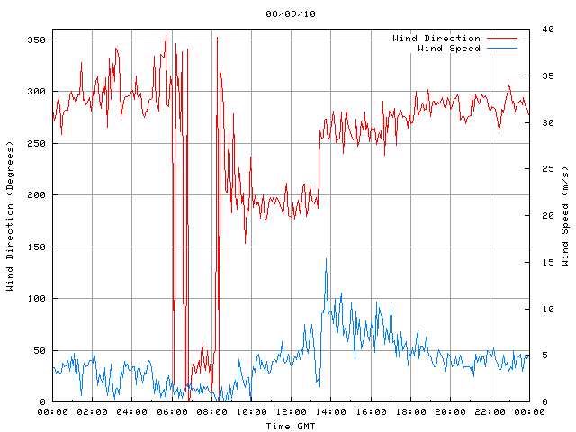 - Max Wind Speed: 15.4 ms-1 Time: 13:46:06 GMT