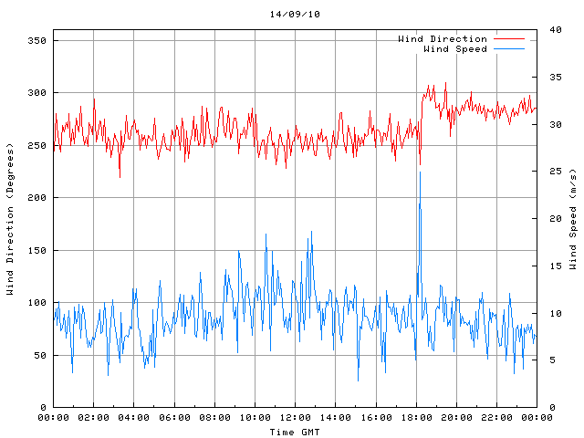 - Max Wind Speed: 24.9 ms-1 Time: 18:12:11 GMT
