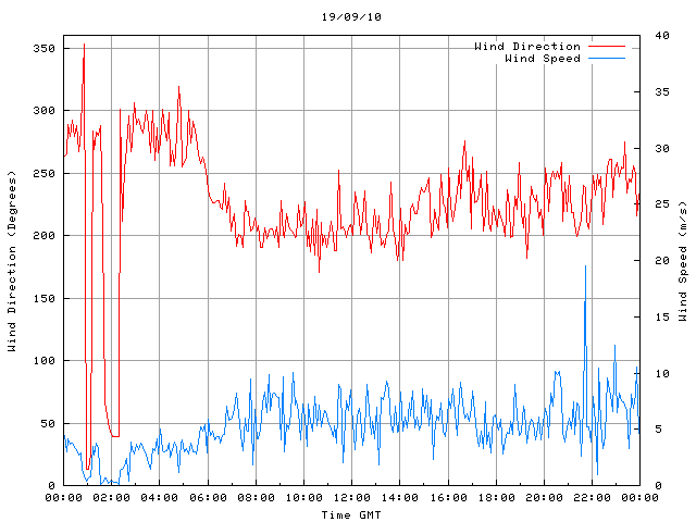 - Max Wind Speed: 19.5 ms-1 Time: 21:42:11 GMT