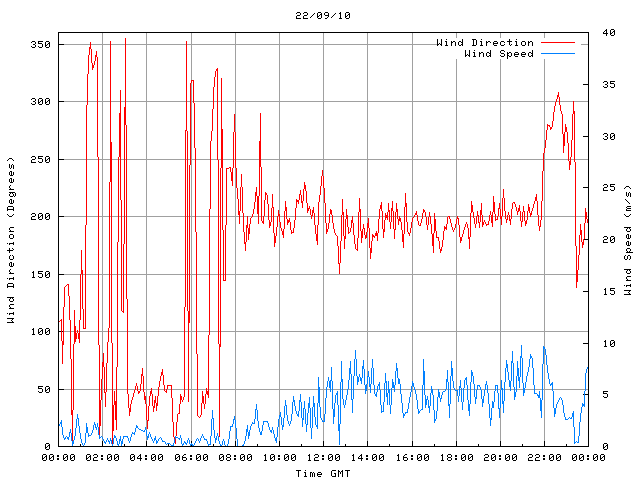 - Max Wind Speed: 9.7 ms-1 Time: 20:57:11 GMT
