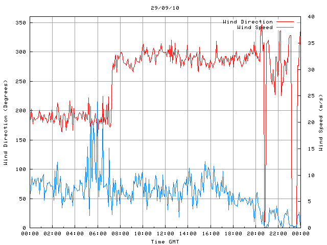 - Max Wind Speed: 23.8 ms-1 Time: 5:57:11 GMT