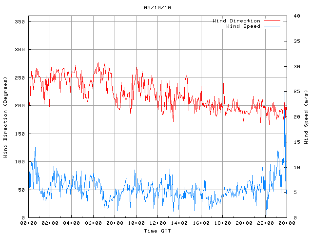 - Max Wind Speed: 24.9 ms-1 Time: 23:47:11 GMT