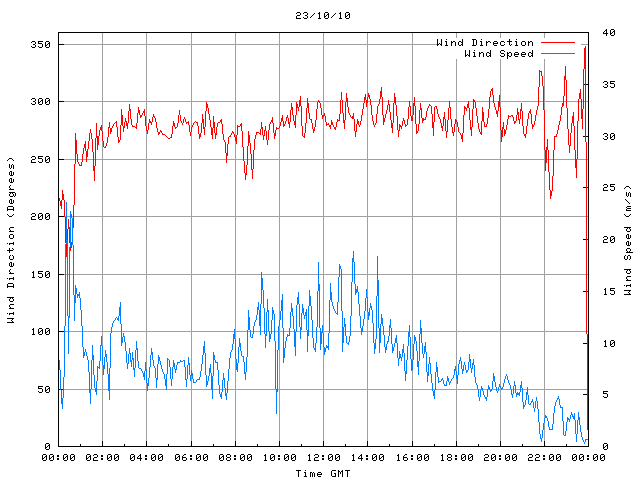 - Max Wind Speed: 23.6 ms-1 Time: 0:22:11 GMT