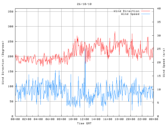- Max Wind Speed: 25.0 ms-1 Time: 12:07:11 GMT