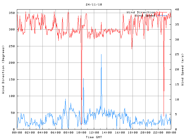 - Max Wind Speed: 25.0 ms-1 Time: 13:07:11 GMT
