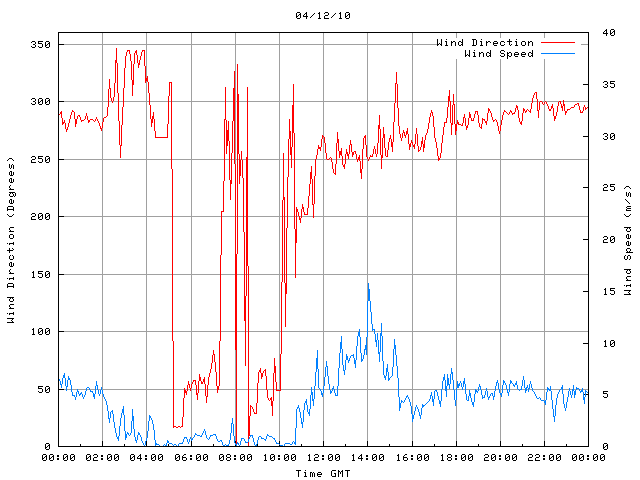 - Max Wind Speed: 15.8 ms-1 Time: 14:02:11 GMT