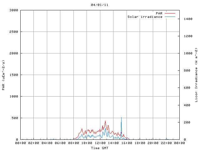 The PML meteorological station, situated on the south-west corner of the building roof, consists of a Hygroclip S3 temperature and humidity sensor housed in a radiation shield, a Mierij Meteo solid state wind sensor (MMW-005), a Chelsea instruments half-hemisphere PAR sensor, a Li-Cor pyranometer (LI-200SZ) and an Omni Instruments 6" tipping bucket raingauge (RG200). The data are logged every 5 minutes using a Pace Scientific XR5 data logger. The real-time rainfall data is likely in error - the correct values will be displayed after a time lag of approximately 24 hours. The meteorological station is sheltered from winds in the north-east and underestimates winds from this quarter. To use these data please contact Dr Tim Smyth.
