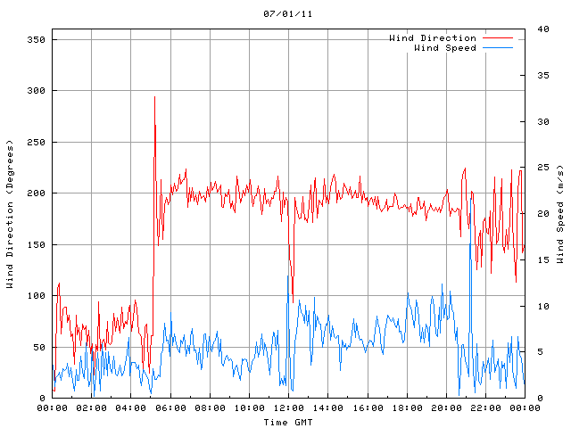 - Max Wind Speed: 21.6 ms-1 Time: 21:12:11 GMT