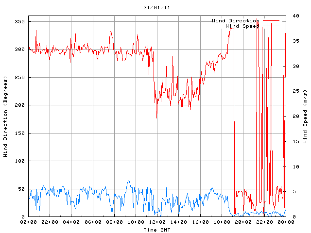 - Max Wind Speed: 7.3 ms-1 Time: 9:22:11 GMT